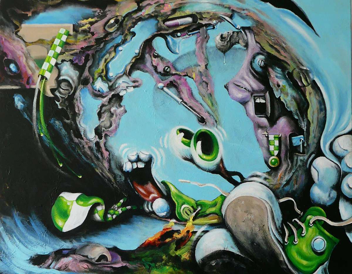 When I painted Action Man, I focused on energy and movement, letting the figures and forms develop naturally. I wanted the work to feel alive, with tension and action in every detail. The painting reflects my interest in combining recognizable elements with unexpected arrangements, inviting the viewer to explore and interpret the scene in their own way.